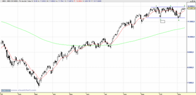 Si superamos el 12.000 pueden pasar dos cosas, lo más probable es que continúe la subida sin perder ya los 11.900, pero puede haber un fallo alcista, que creo que sería una señal definitiva de que comienza la corrección.