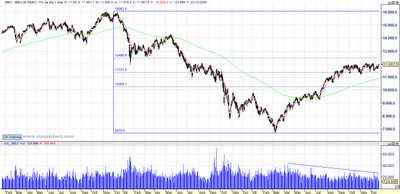 A mi modo de ver, la clave va a estar en la superación de los 12.500. No me extrañaría una superación de los 12.100 a principio de año, con una subida de 300 ó 400 puntos y, sin superar los 12.500, empiece una caída importante. Con esto, tendríamos un fallo alcista, con la superación y pérdida de los 12.100 puntos y se abriría la puerta a una corrección muy seria.