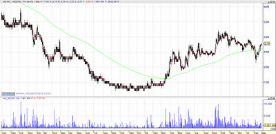 Viendo solamente este gráfico, la pinta sigue sin ser buena. Aunque hay que decir que incluso habiendo perdido la media de 200 periodos, esta sigue sin tener pendiente negativa, esta plana.