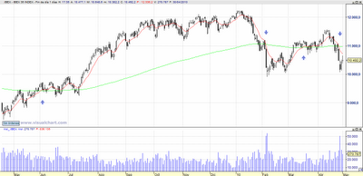 Lo que hay que concluir de este sistema, es que es muy fiable a largo plazo, aunque siempre hay momentos como los actuales. Es muy importante operar solo a favor de la tendencia que nos marque este sistema. Es decir, en la situación actual no deberíamos de comprar Ibex. Sin embargo, es una buena idea buscar puntos para operar a la baja en futuros, o con venta de acciones a crédito vía CFDs