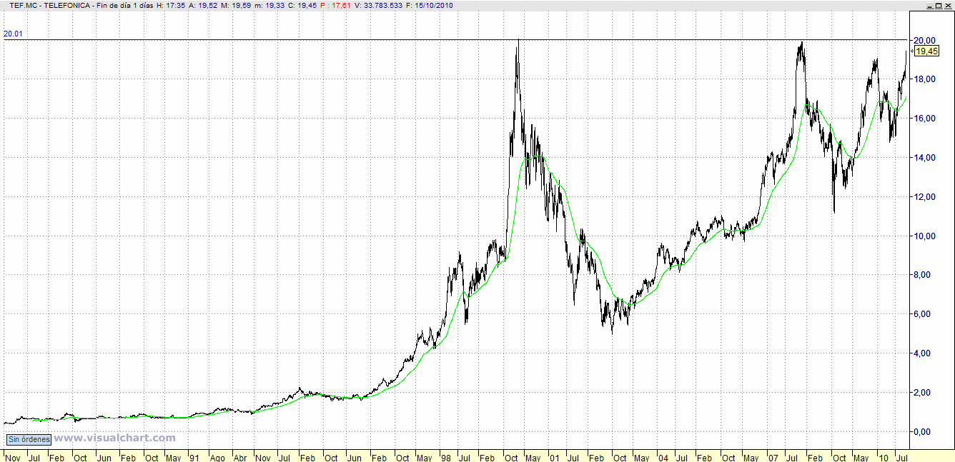 Si Telefónica superara los 20,5 ó los 20 al cierre, sería una magnífica oportunidad de inversión.