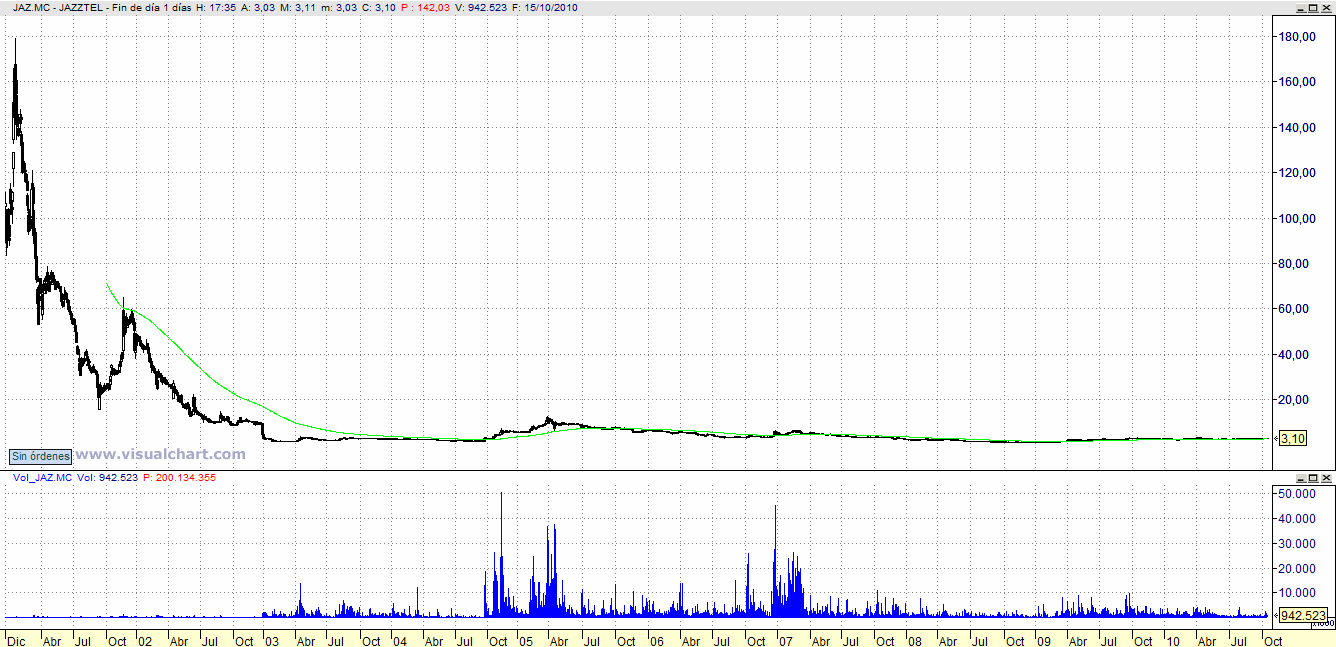 Un valor más pequeño, pero que puede dar plusvalías impresionantes es Jazztel.