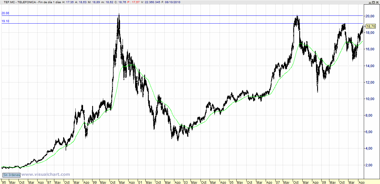 Impresionante comportamiento el de Telefónica. Estamos muy cerca de los máximos históricos, y demuestra una vez más que quien confía en las grandes acaba ganando siempre.