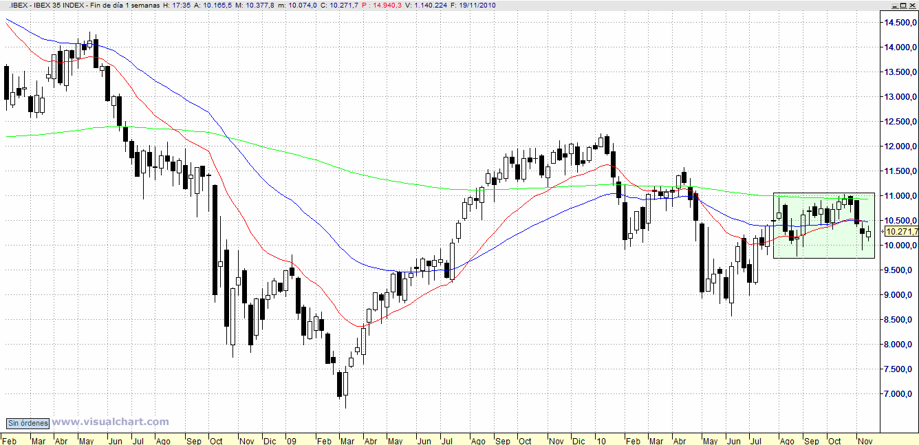 Parece ser que llegará un día en el que España empeorará hasta llegar a la situación de Grécia o Irlanda, en cuyo caso romperemos a la baja, o por el contrario, se llagará a la conclusión de que no tenemos mucho que ver con ellos y volverá la inversión extranjera, rompiendo el Ibex los 11.000 puntos.