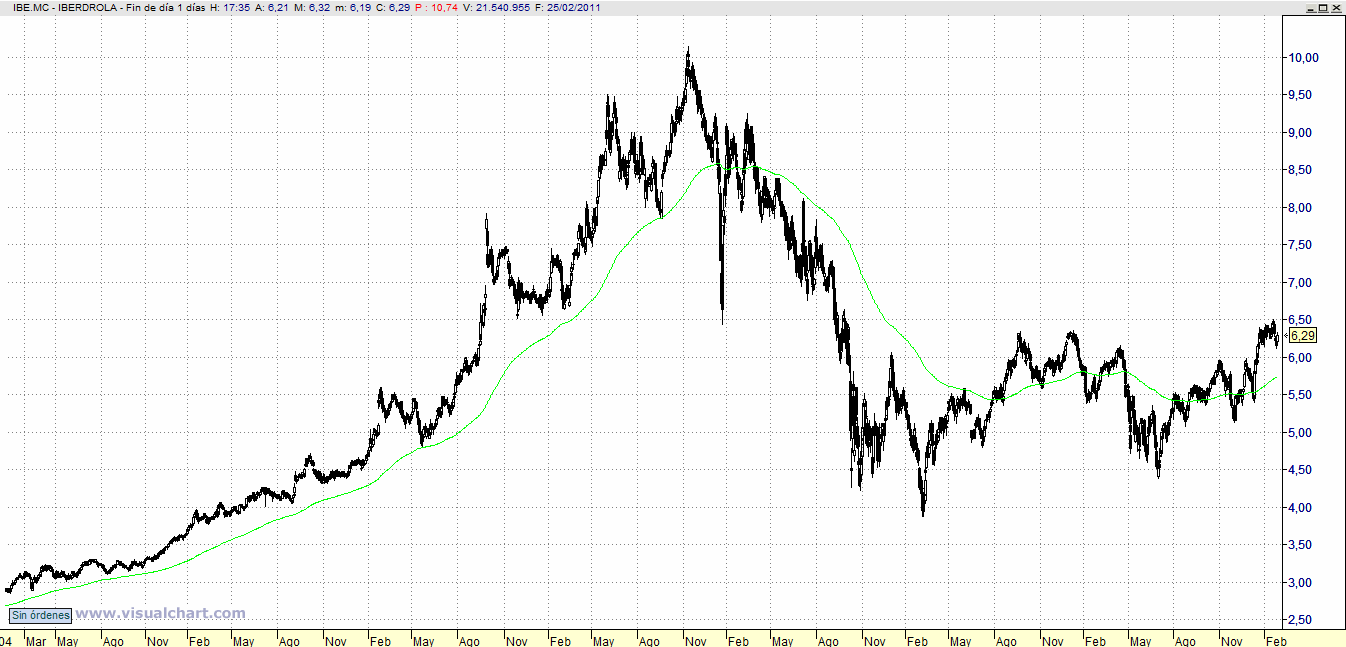 Del resto de valores, pues Inditex parece estar haciendo un suelo tras la corrección y no creo que tarde mucho en tener un nuevo impulso a la búsqueda, de momento, de sus máximos de Diciembre en los 64,5. Parece una buena inversión para el corto plazo.