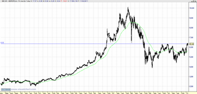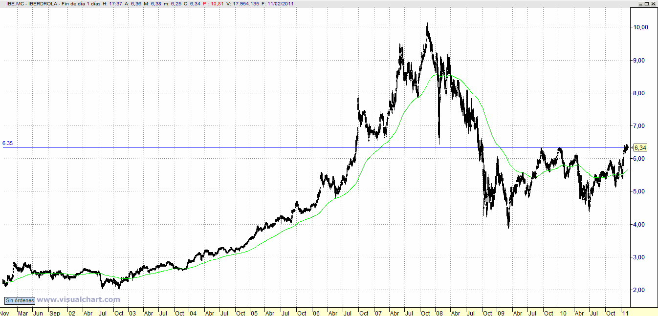 Es el último de los grandes que se puso alcista, ahora está consolidando ante la resistencia de los 6,45, si lo supera subirá muy fuerte.