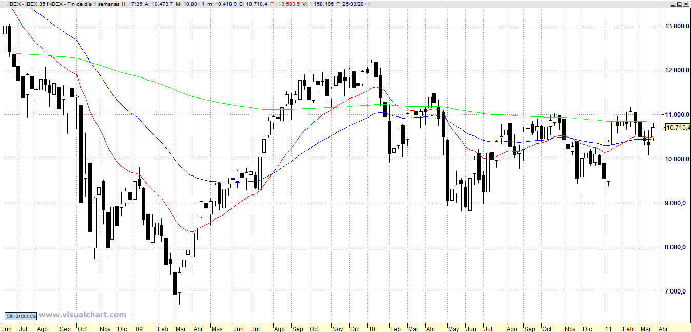 Da la impresión de que el Ibex acabará por superar los 11.000 y entrar en un mercado claramente alcista. El comportamiento del resto de índices importantes ha sido muy bueno, respondiendo a las caídas con gran contundencia alcista.