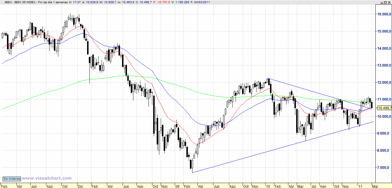 La situación en Libia es insostenible, no sabemos cuanto más durará, pero da la impresión, de que si se aclara la situación, las bolsas reaccionarán al alza.