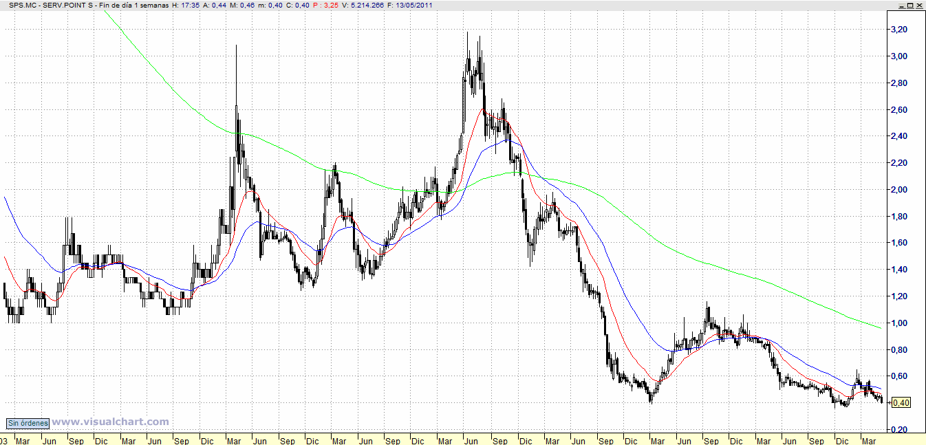 El gráfico de SPS, muestra lo que podría ser un doble suelo. Estamos en la zona de 0,4 y viene cayendo desde los 3 Euros.