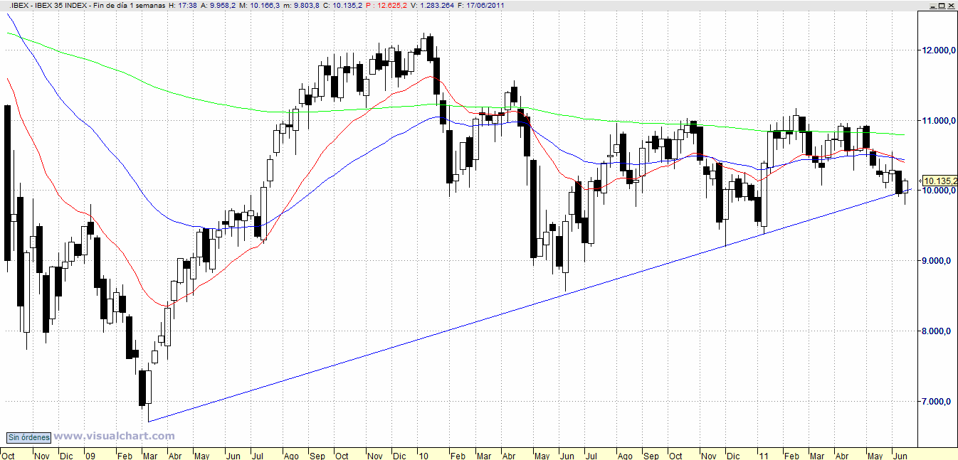 Por último, nuestro sistema de especulación, nos dió una entrada falsa al superar los 10120 y perder al día siguiente los 9.950. Hay que poner una compra en el entorno de los 10.100 del Ibex contado con un stop en los 9.945 de nuevo.