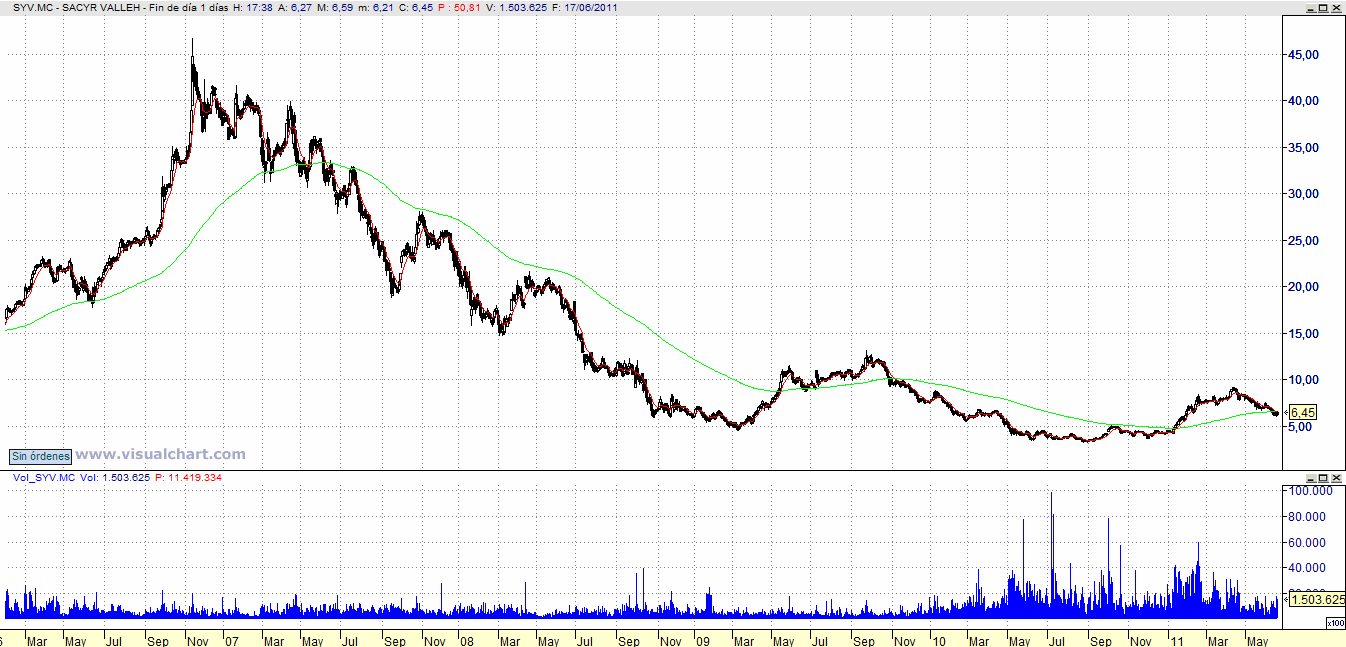 Hay que tener en cuenta que el máximo que marcó SYV fue de 46,75 por lo que a los niveles actuales hay mucho que recuperar. Siendo ortodoxos podríamos perfectamente tener un rally hacia la zona de 12-13, para apoyarse en 9 y seguir subiendo. Aunque también hay que decir que es el valor más endeudado del Ibex y esto siempre es un dato negativo.