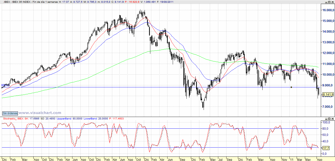 Lo bueno es que ya tenemos una referencia más o menos fiable, se trata de los 8.800 del Ibex. Este nivel ha dado por finalizado el rebote y desde ahí han vuelto las ventas con gran dureza. Podemos decir que si recuperamos esa cota, cambiaría mucho el panorama, cosa bastante improbable por el momento.
