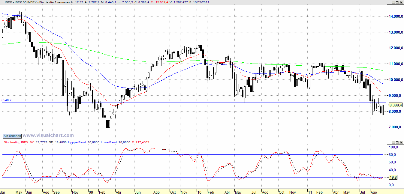 Es una señal muy importante de cambio a alcista, para confirmarse, esta semana debería de aparecer otra vela blanca y colocarse por encima de la resistencia de 8.540.