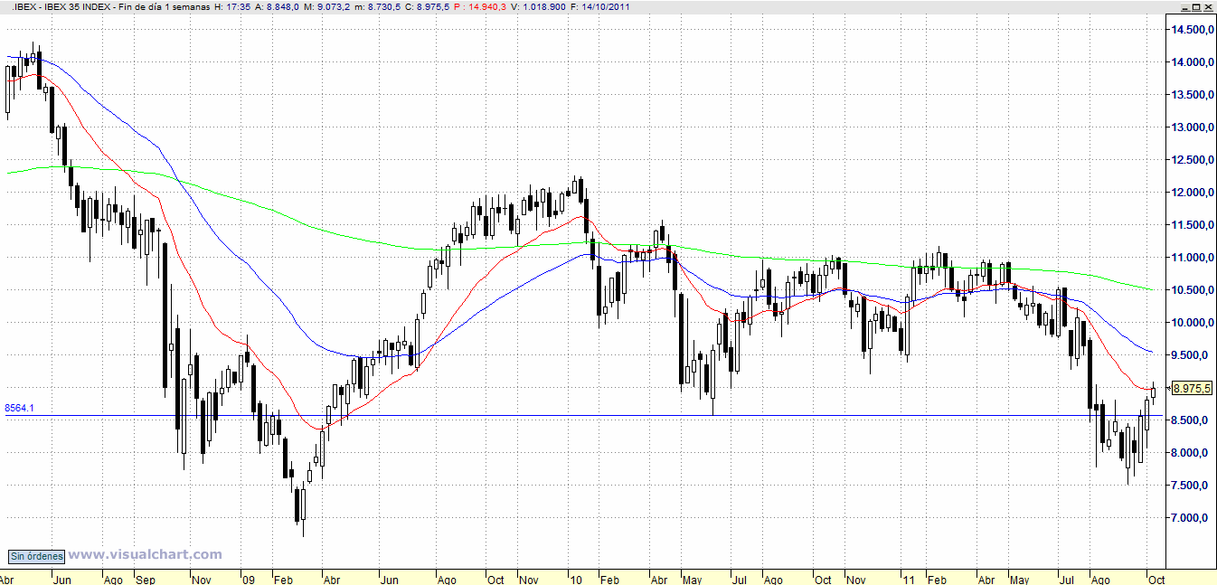 Por el momento, el Ibex ha superado claramente la zona de 8.550, fue un soporte perdido y recuperado, y previsiblemente el inicio de una recuperación mayor.