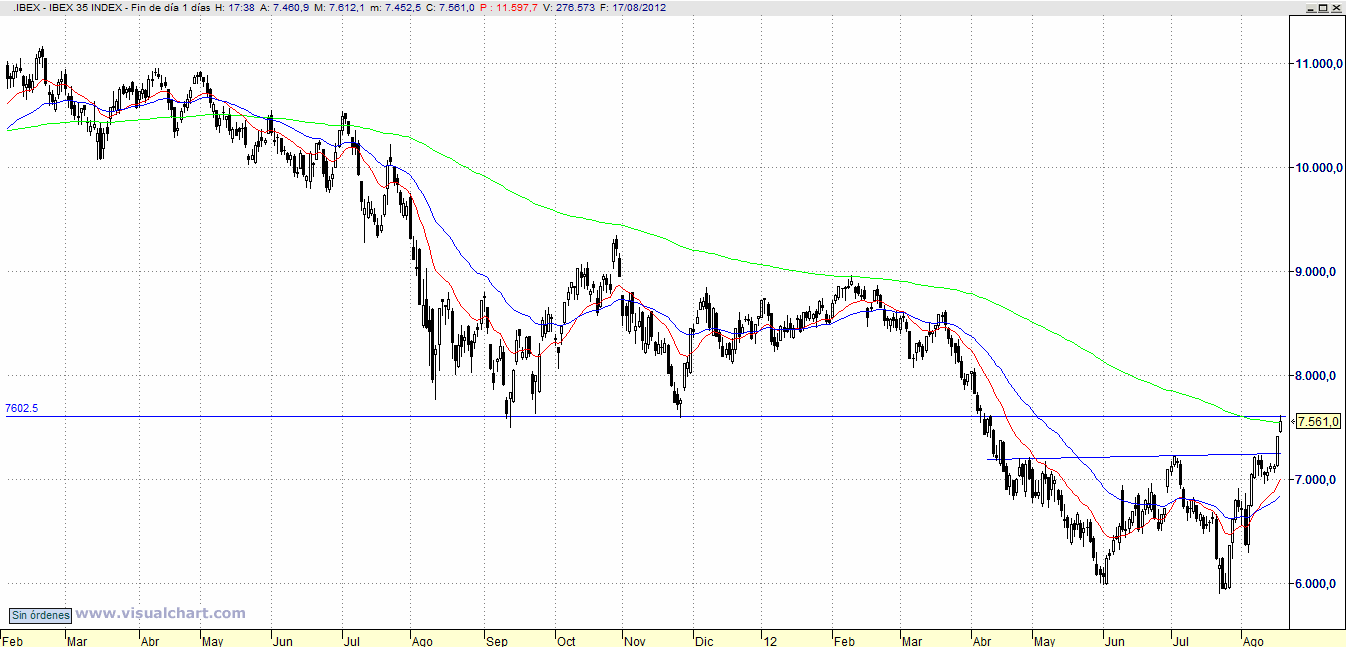 Además, en los 7.550 tenemos la media de 200, que hoy por hoy sigue marcando la tendencia bajista en la que aún estamos instaurados.