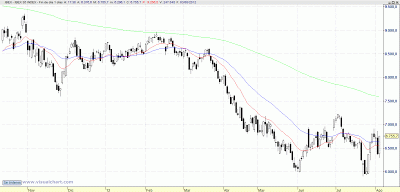gráfico del Dax tiene muy buen aspecto, y los Americanos tampoco están mal, pero muestran ciertos síntomas de cansancio.Lo bueno de los movimientos laterales como este es que los valores alcistas tienden a seguir subiendo y los bajistas todo lo contrario, por lo que hay que centrarse en los alcistas o bien arriesgarse y entrar en aquellos que habiendo sufrido mucho más de lo esperado, empiezan a dar
