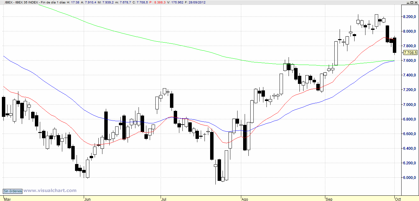 En teoría los valores que mejor se han comportado en la subida previa a esta corrección son los que mejor lo van a hacer si continúa el movimiento al alza, por lo que habría que apostar por los bancos, Repsol, Gamesa, FCC, Abengoa, etc etc.