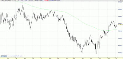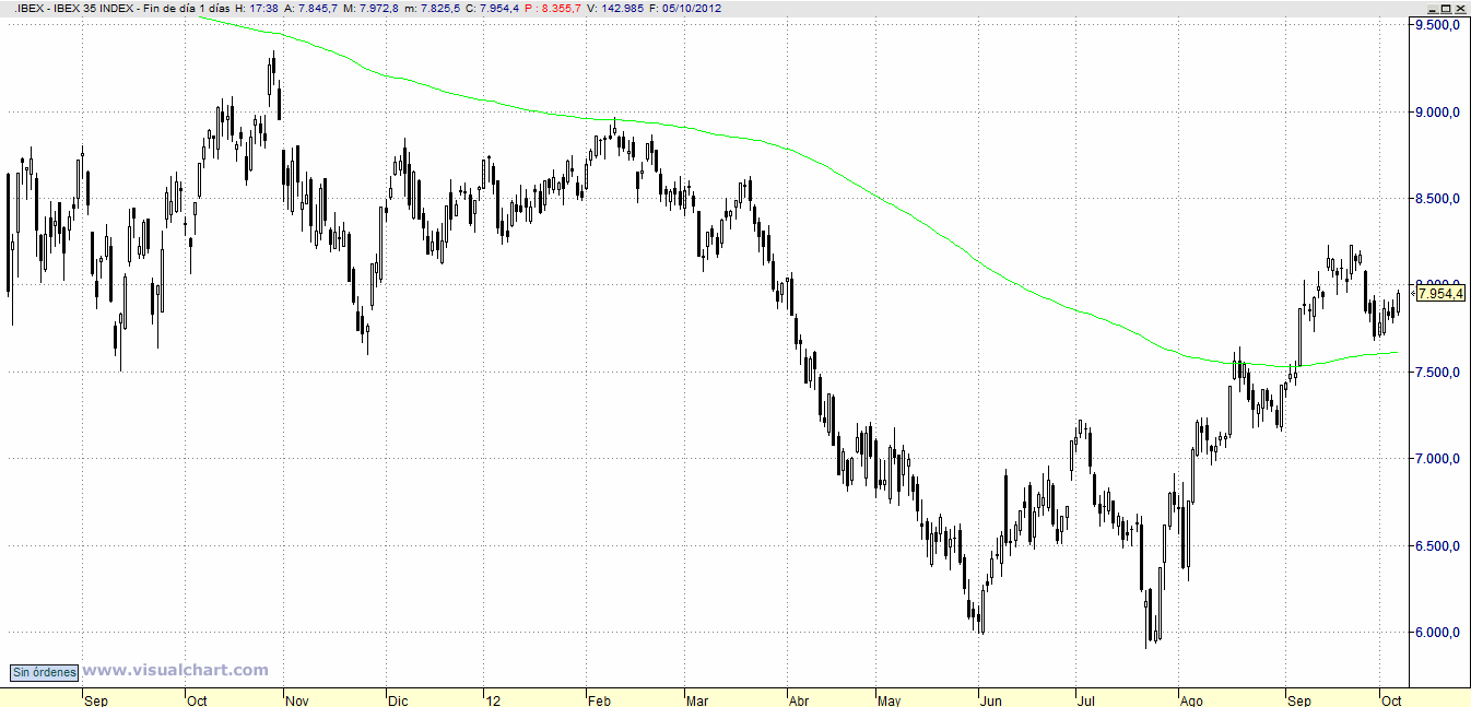 El Ibex se ha mantenido bien por encima de su media de 200 periodos y ayer superó el nivel de los 7.900 puntos, que le estaba suponiendo un freno importante.