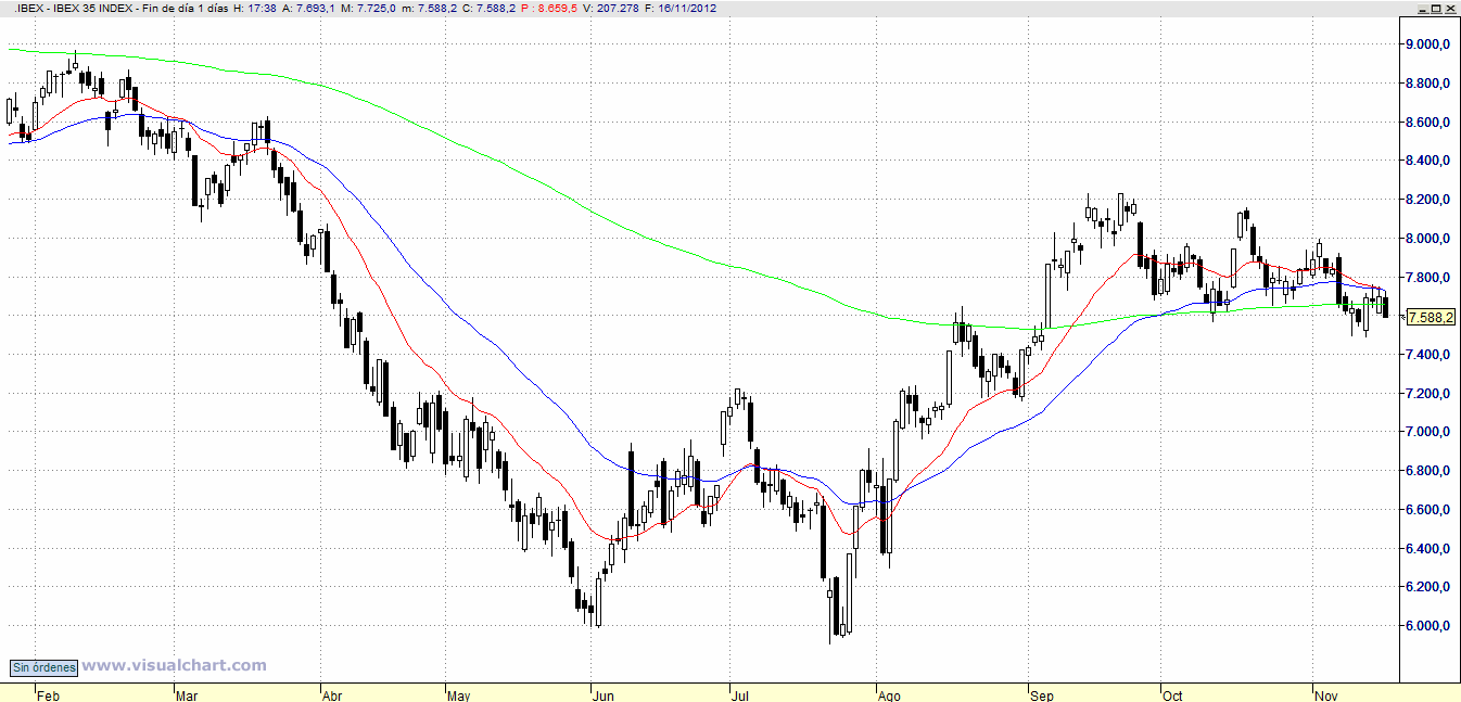 Técnicamente si perdemos los 7.500 puntos, la probabilidad de bajar fuerte es muy alta, por lo que habría que salir del mercado y volver a entrar, caso de que fuera una falsa alarma.