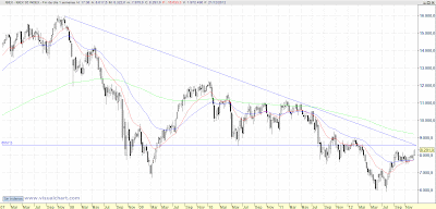 Hemos podido trazar una línea de tendencia bajista desde los máximos históricos del Ibex y pasa exactamente por la primera resistencia, es decir, los 8.550 deben de suponer claramente un alto en el camino.