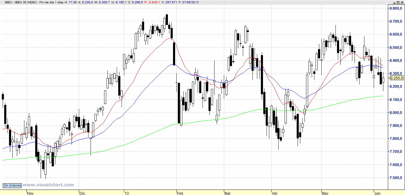 Si vemos este gráfico, lo primero que nos llama la atención es el amplio movimiento lateral entre los 8.700 y los 7.700 en números redondos.