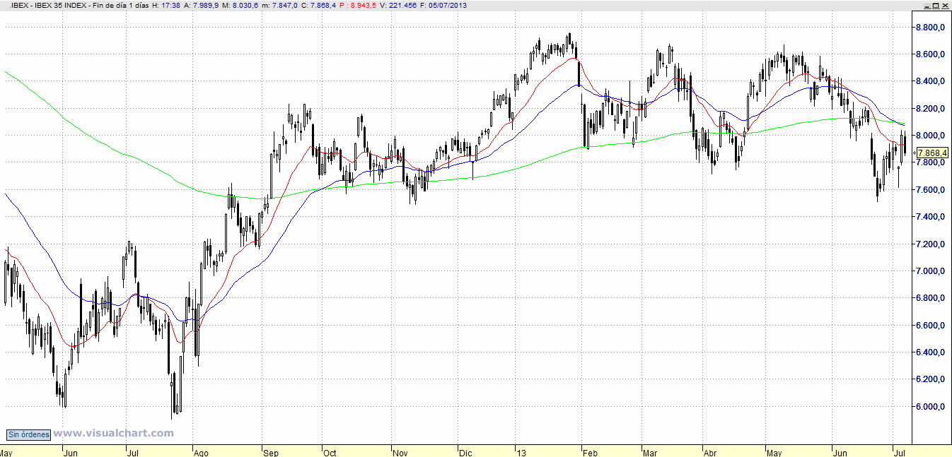 El Ibex está entre los 7.500 y los 8.225. Es un rango amplio, pero es el que nos va a llevar a una nueva tendencia alcista o bajista.
