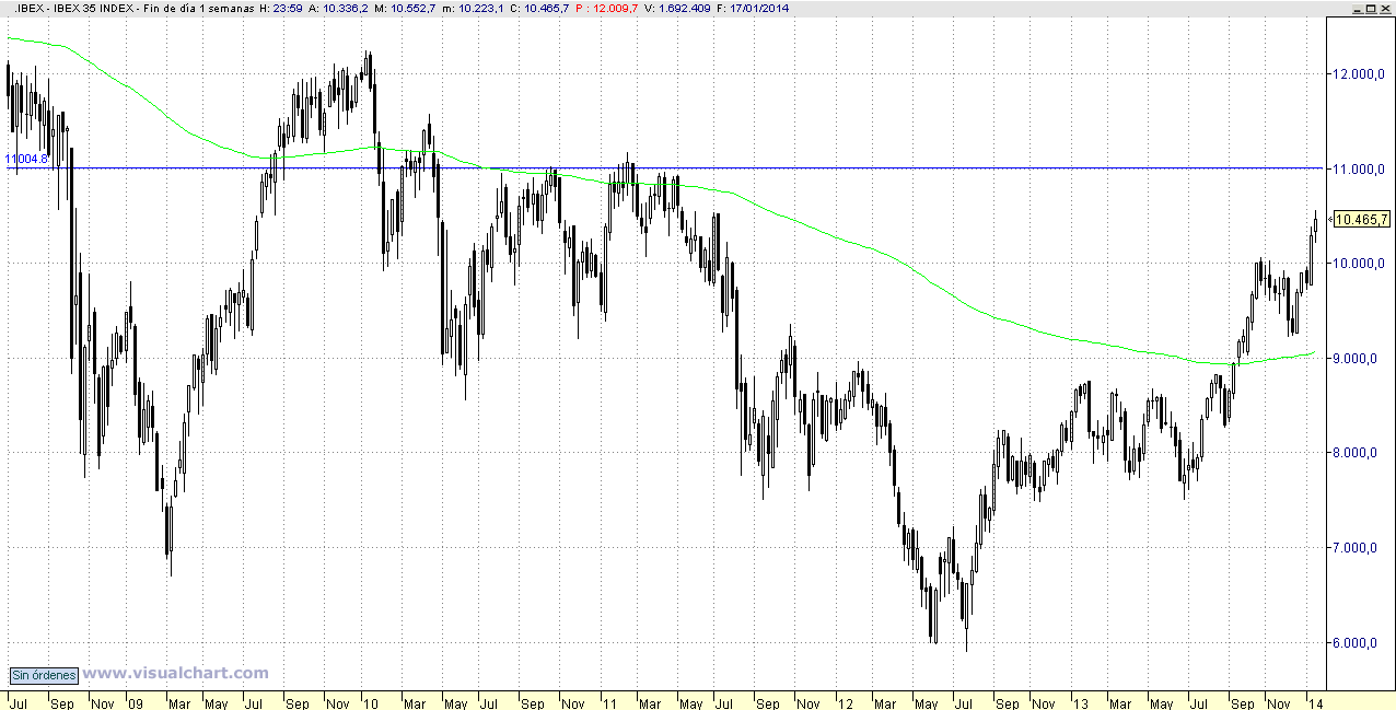 El Ibex suma una semana más de subidas, tras superar la semana pasada los 10.000, se encamina firmemente hacia los 11.000, donde debería tener un nuevo parón y una consolidación adecuada.