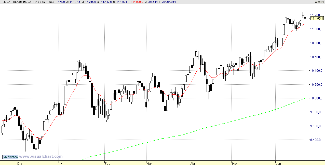 Nuestro nuevo stop está fijado en los 10975, mientras mantengamos este nivel hay que seguir en bolsa y esperar a una nueva señal que nos permita subir el stop más aun.