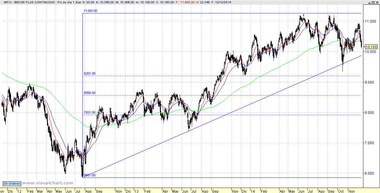 Por el momento decir que si alguien sigue dentro del mercado, debería de salir por debajo de los 9.900 y no volver a entrar a menos que recuperáramos los 10.000.