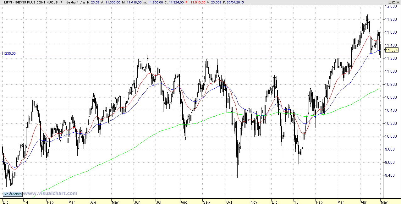 Es cierto que la media de 200 días está 600 puntos por debajo, y podríamos ir a buscarla, pero técnicamente desde aquí podemos tener un nuevo tramo al alza, lo mejor es tomar posiciones ahora y si perdemos los 11.200, vender y comprar más abajo o cuando recuperemos los 11.300.