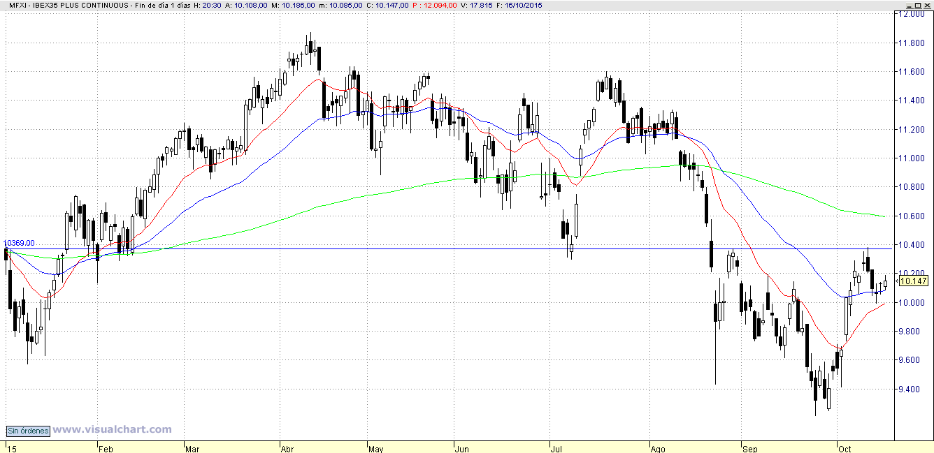Si el Ibex supera los máximos de esta semana, que es una resistencia clara, sería una señal importante, hablamos de la zona de los 10.370, aunque hay que tener claro que la media de 200 días aún está en la zona de los 10.600.