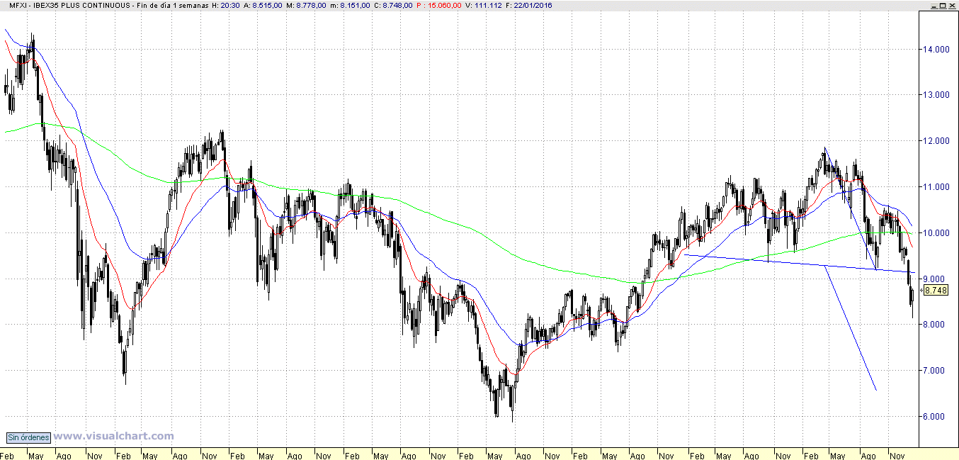 Lo malo es que el gráfico muestra una clara figura de «hombros-cabeza-hombros», en el que rompió la zona clavicular en el entorno de los 9.200 puntos, y este movimiento al alza puede ser el clásico Pull-Back hacia la zona de rotura. Si esto es así, la caída mínima teórica está en los 6.600 puntos, por lo que el objetivo de los 6.000 puntos ya está ahí.