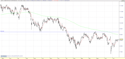 Si llegamos ahí, no va a ser fácil. Es una zona donde van a haber muchas ventas, y va a hacer falta una fortísma presión de las compras, para absorver toda esa gran venta que va a aparecer, es por esto que muchas veces las resistencias importantes no se superan al primer intento. En cualquier caso, si se superara, la señal alcista sería muy potente y muy fiable, estaríamos de nuevo, tras un año bajista en un mercado alcista.
