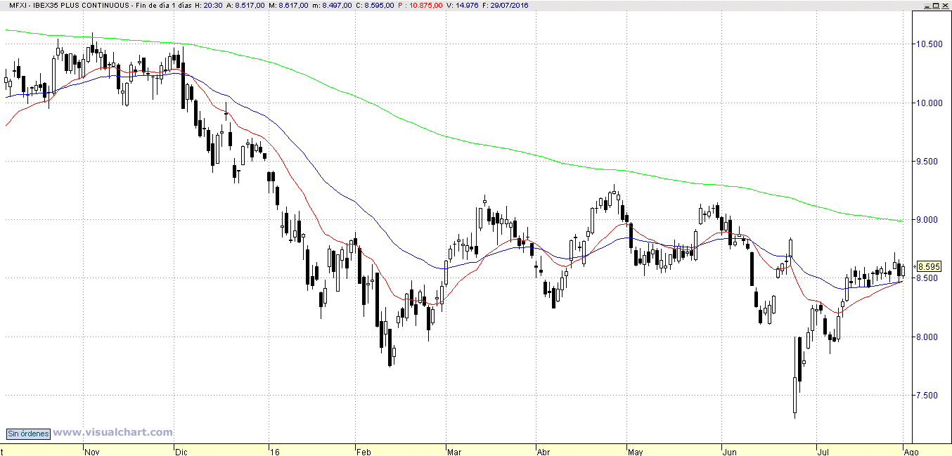 El Ibex sigue en un mercado lateral, aunque hay que destacar que ha aumentado la volatilidad, por lo que hemos hecho un intento de superación de los 8.600, pero no ha acabado de prosperar.