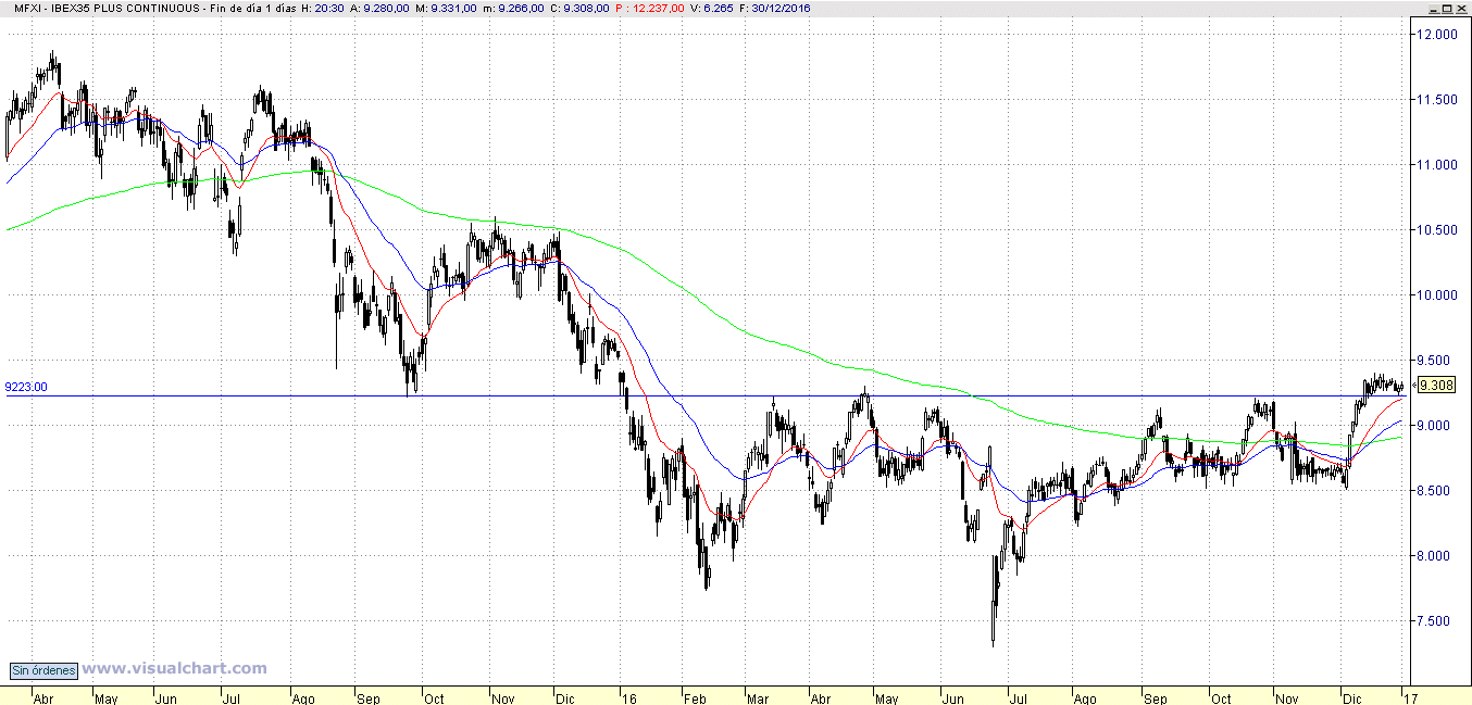 En Diciembre hemos superado el importante nivel de los 9.200 puntos y llevamos tres semanas cerrando por encima de este nivel, aunque no muy lejos.