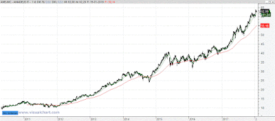 Por último Amadeus, o el mejor ejemplo de porque hay que comprar un valor en máximos históricos, sigue subiendo de forma muy ordenada, y mientras no cambie hay que seguir dejando correr los beneficios.