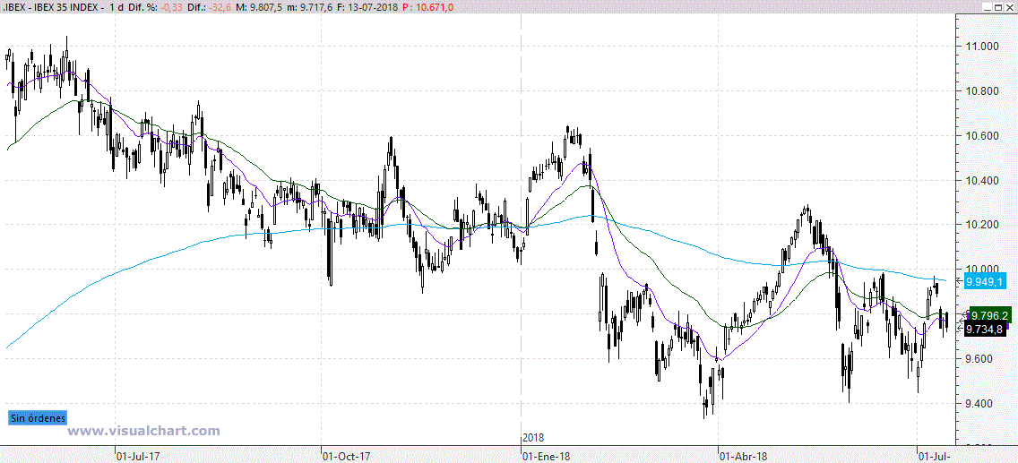 Con este panorama, y en verano, cualquier cosa es posible, pero no se esperan grandes rupturas al alza ni a la baja. Ciñéndonos en el Ibex, la semana próxima deberíamos de bajar, al menos al principio un poco y luego ya veremos si vuelve a los 9.400 o intenta atacar de nuevo los 10.000.