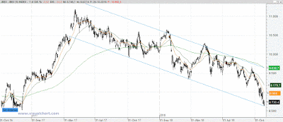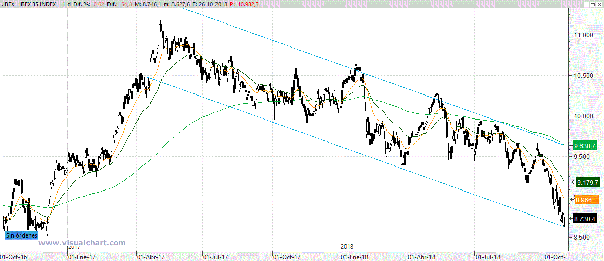 El Ibex lleva cinco semanas bajando y está en la parte baja del canal bajista.