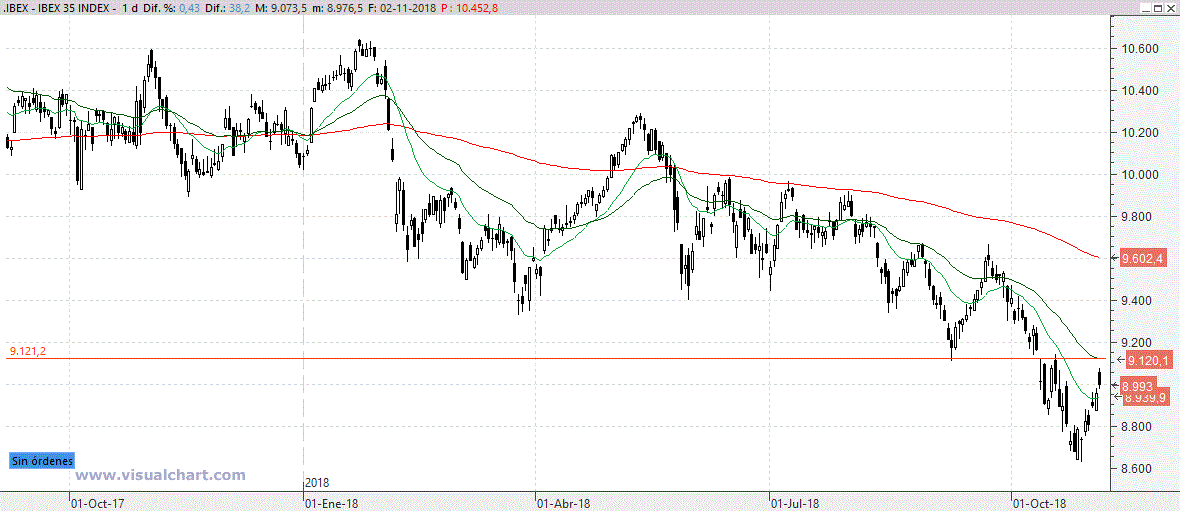 Ha sido una semana alcista, en la que el viernes hemos llegado cerca de la importante resistencia en la zona de los 9.100 puntos, que ha hecho retraerse un poco. Tras esta primera buena semana alcista, es muy probable que la que entramos, tenga algún otro movimiento al alza, pero no va a ser fácil, por la proximidad de la primera resistencia destacable. Hay que tener en cuenta que el Ibex es bajista, y que en un mercado bajista, los rebotes hay que aprovecharlos para vender.