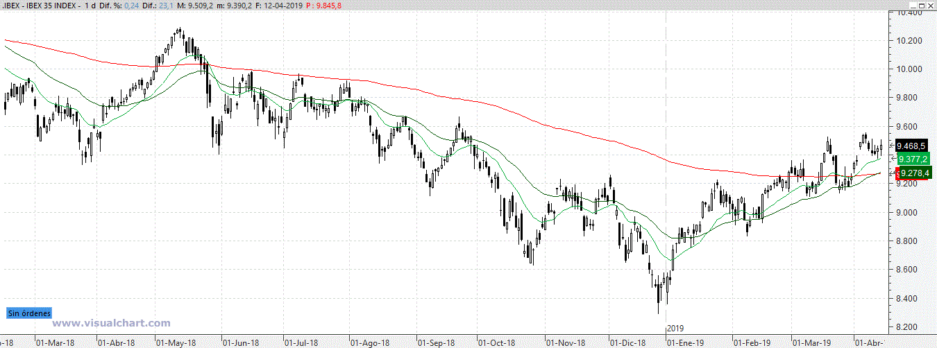 La media de 200 días del Ibex está en los 9278 puntos, hemos cerrado en los 9468 y si perdiéramos los 9127 continuaría la tendencia bajista, por lo que se pueden seguir tomando posiciones en valores que lo hacen bien y mantener mientras el Ibex no cambie el sentimiento.