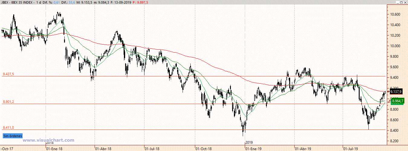 El Ibex enlaza su tercera semana subiendo muy fuerte, hasta llegar a su media de 200 días, una media con pendiente negativa, que es muy posible que frene la subida.