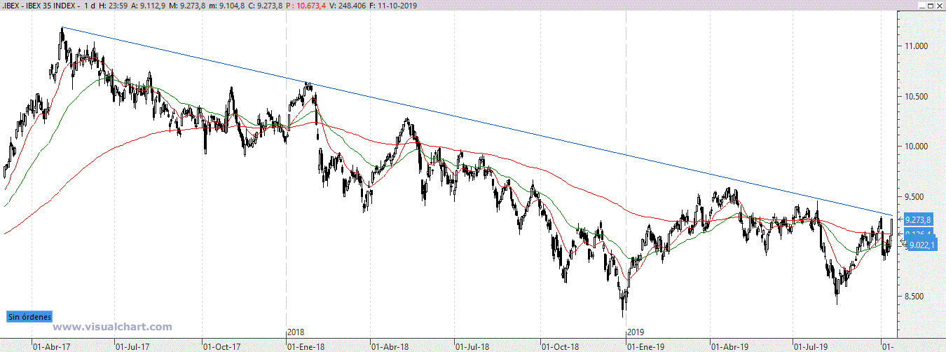 Con esto, el Ibex no va a superar su tendencia bajista de buenas a primeras, por lo que seguimos con un Ibex bajista y mientras no superemos los 9.300 no podremos hablar de un mercado alcista.