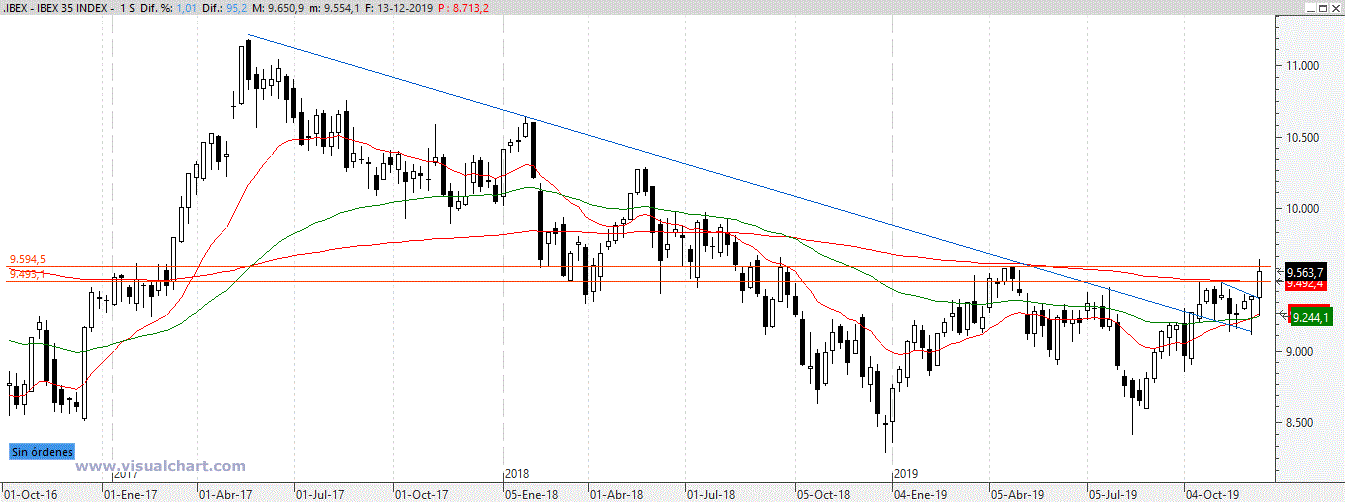 La noticia es que el Ibex ha superado los 9.500 puntos, y eso es una gran noticia, porque es la confirmación que necesitábamos para poder confirmar que el Ibex vuelve a ser alcista.