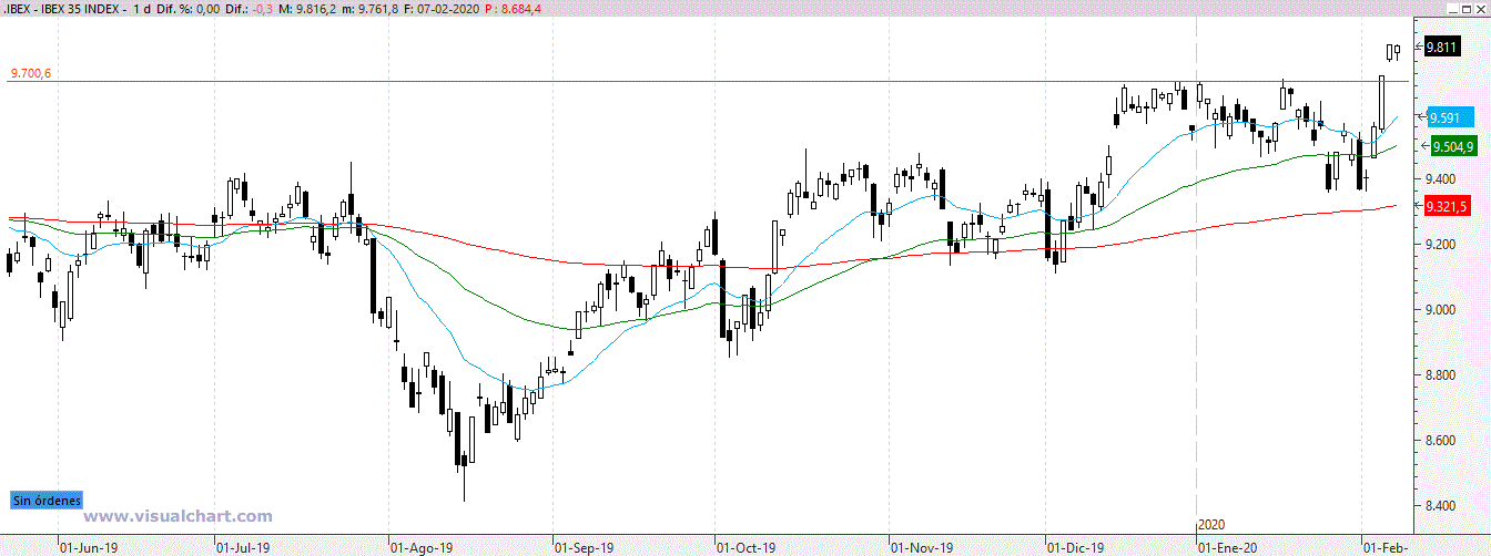 Semana muy alcista disipando cualquier duda de la semana anterior. Hace pocas semanas dijimos que lo que estaba funcionando en las bolsas es comprar ante cualquier corrección, sea el motivo que sea, y se ha vuelto a cumplir. La semana pasada hubieron ventas de pánico, pero en efecto y tal cómo pensábamos no llego la sangre al rió, todo lo contrario, la subida ha sido muy contundente, superando la importante resistencia de los 9.700 del Ibex.